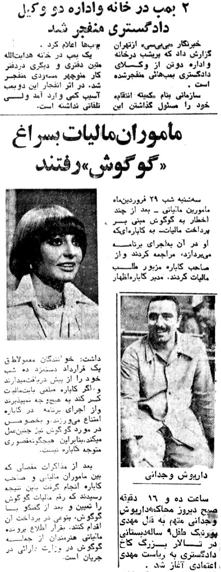 طبق گزارش نظرسنجی از مخاطبانِ شماره پنجشنبه 31 فروردین 1357 که در جلسه عصر یکشنبه سوم اردیبهشت شورای دبیران روزنامه به ریاست غلامحسین صالحیار خوانده شد تا در جریان قرار داشته باشند، این سه خبر؛ ایجاد انفجار در دفاتر هدایت الله متین دفتری (نوه دکتر مصدق) و منوچهر مسعودی دو وکیل قضایی تهران و نیز خبر مطالبه مالیات از درآمد گوگوش از خوانندگی در کاباره و خبر محاکمه قاتل یک کودک بیشترین مخاطب را کسب کرده بودند. انفجار در منازل و دفاتر متین دفتری و مسعودی، کار کمیته انتقام! اعلام شده بود که دبیران خبر می گفتند دست ساواک درکار بود. در مورد مالیات از گوگوش، مدیر یک کاباره گفته بود که دستمزد خوانندگی را هر شب پس از اجرای برنامه پرداخت کرده و در ایران کسر کردن مالیات هنگام پرداخت دستمزد مرسوم نیست.