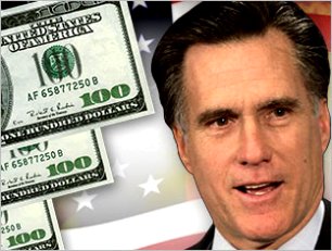 و عكس دیگر (عكس زیر) «میت رومنی» از حزب جمهوریخواه و فرماندار پیشین ماساچوست را كه در همین مدت 20 میلیون دلار جمع كرده بود با انبوهی اسكناس نشان می داد.