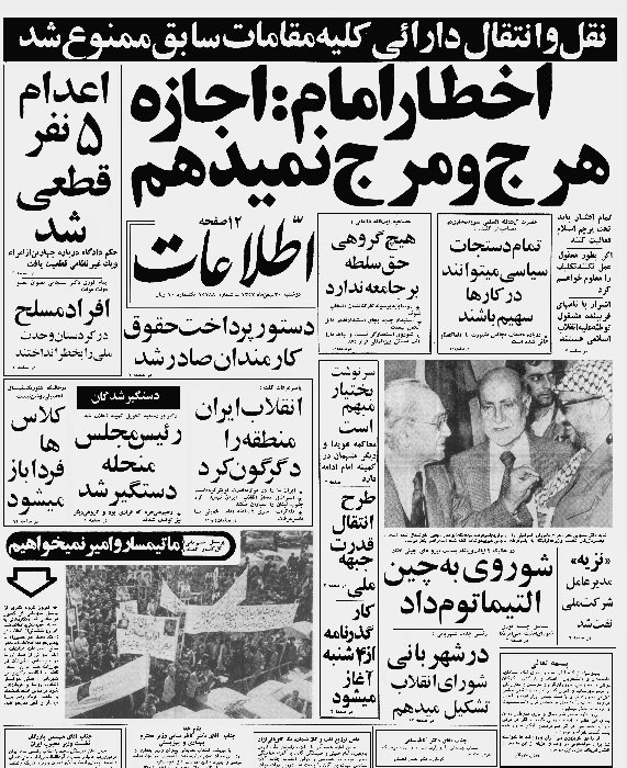 ... و کُپی صفحه اول شماره یکم اسفند 1357 روزنامه اطلاعات: