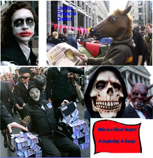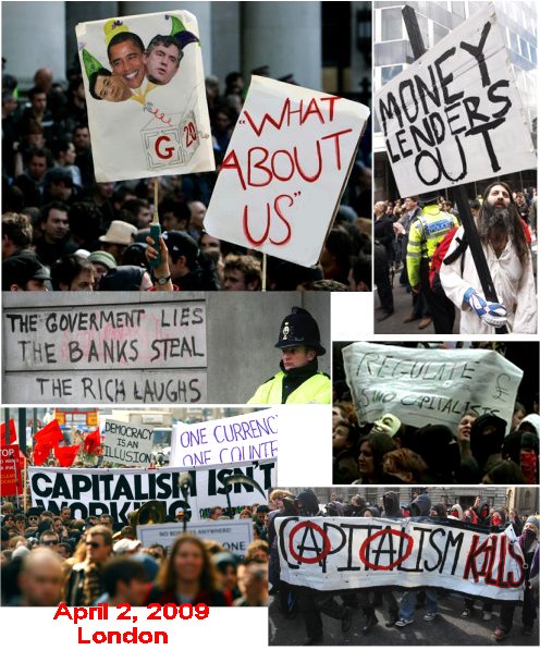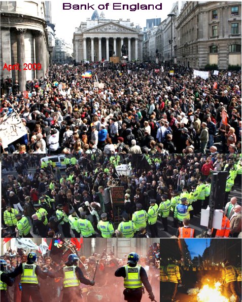 تظاهرات بر ضد «ليبرال ـ کاپيتاليسم» مقابل بانک انگلستان و در منطقه تمرکز امور معاملات مالي در لندن (اپريل 2009)