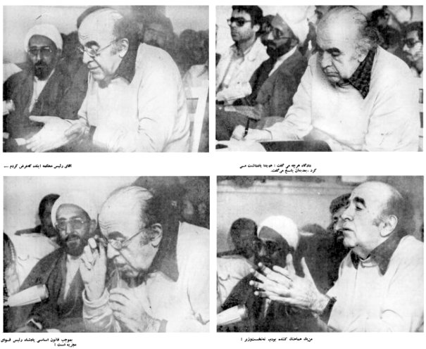 کپی چند عکس ازجلسه محاکمه هویدا از صفحه 5 شماره 19 فروردین 1358 روزنامه اطلاعات