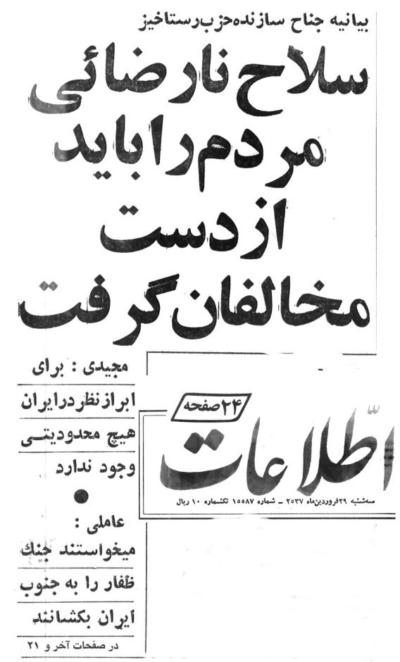 تیتر یک بیانیه یک جناح حزب رستاخیز در صفحه اول روزنامه اطلاعات شماره 29 فروردین 1357 (سال انقلاب) درج شده بود: