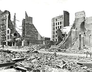 منظرهِ گوشه اي از سانفرانسيسکو پس از وقوع زلزله که با خاک يکسان شده بود