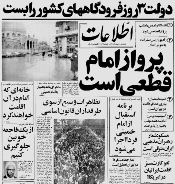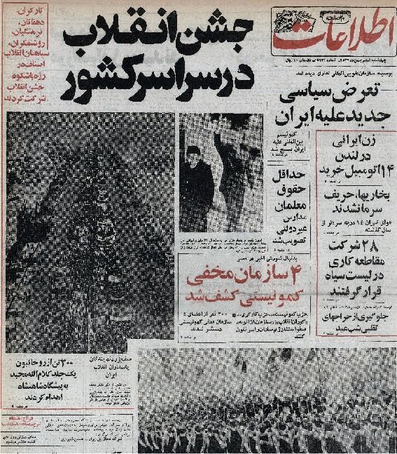 تیترهای صفحه اول روزنامه اطلاعات از رویدادهای پنجم بهمن 1357 در شماره این روز این روزنامه