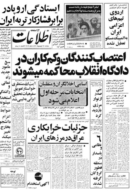 با این هدف، نگاهی به کُپی صفحه اول روزنامه اطلاعات ـ شماره 23 فروردین 1359(14 ماه پس از انقلاب):