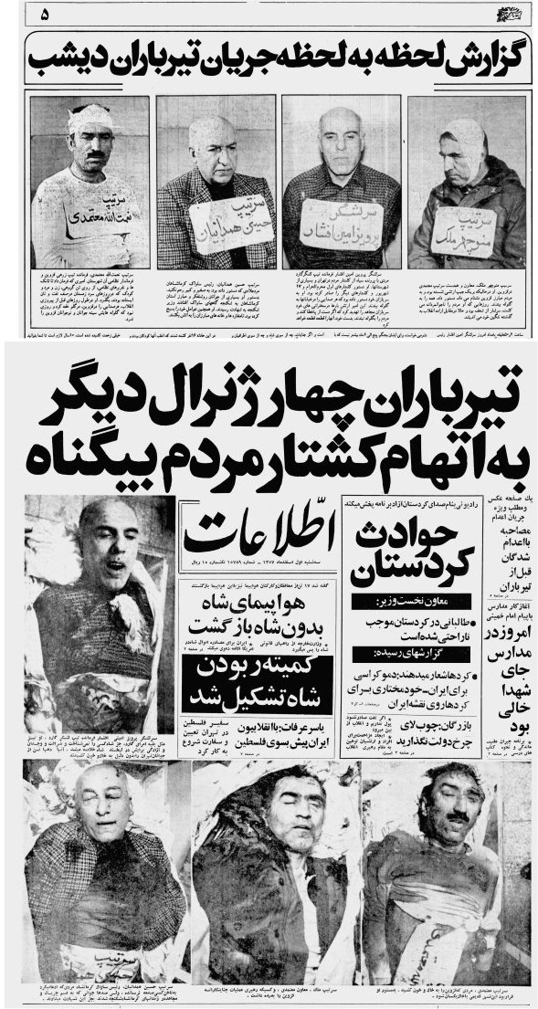 کُپی صفحه اول شماره 29 بهمن 1357 روزنامه اطلاعات که رویدادهای مهم وقت را بازتاب داده بود، برای ماندن در تاریخ