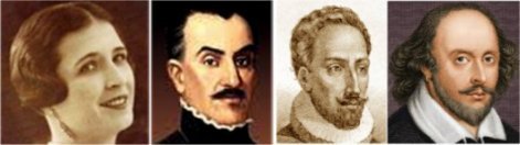 از راست به چپ: شکسپیر، سروانتس، گارسیلاسو و بانو «ترسا دِ لا پارا»