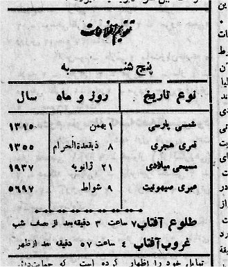 روز و ماه خورشیدی و یا میلادی مورد نظر را انتخاب و كلید مشاهده را فشار دهید