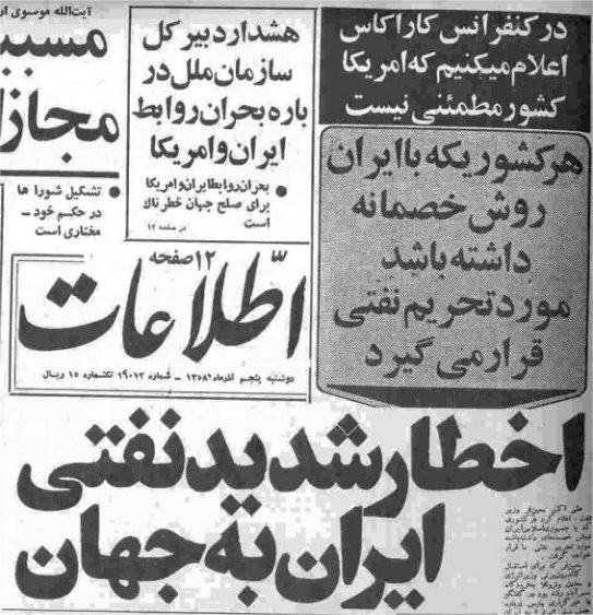 15 آذر 1358 (6 دسامبر 1979) و يك ماه و دو روز پس از تصرف ساختمان سفارت آمريكا در تهران و به گروگان گرفته شدن كاركنان آن، شوراي امنيت سازمان ملل به اتفاق آراء از جمهوري اسلامي خواست كه بي درنگ گروگانهاي آمريكايي را كه پرسنل ديپلماتيك بودند آزاد سازد و به ايشان اجازه خروج از ايران بدهد و دو كشور اختلافهاي خودرا در چارچوب منشور ملل از راههاي مسالمت آميز حل كنند.