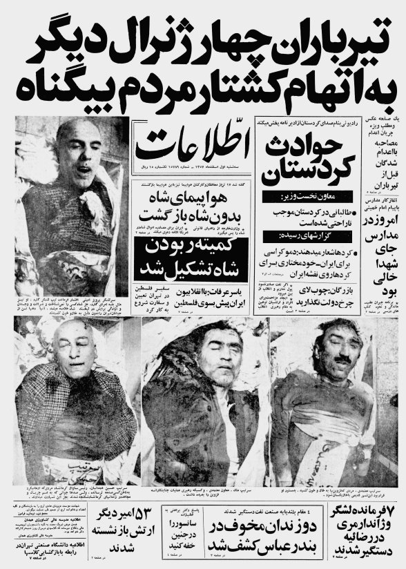 کُپی صفحه اول شماره 30 بهمن 1357 روزنامه اطلاعات که رویدادهای وقت ـ 8 روز پس از پیروزی انقلاب را بازتاب داده بود، برای یادآوری و تاریخ نگاران