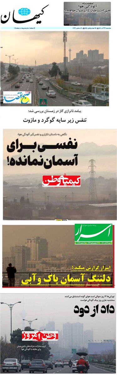 هوای آلوده تهران در دهه آخر آذرماه 1401 تیتر و تصویر روزنامه ها: