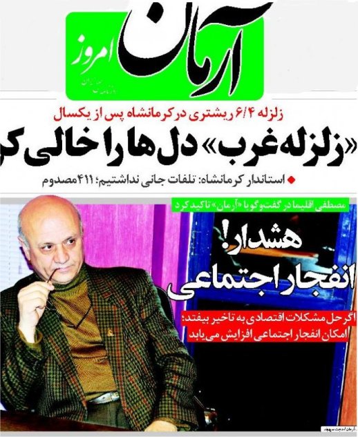«روزنامه آرمان امروز» چاپ تهران مصاحبه ای با دکتر مصطفی اقلیما استاد دانشگاه داشت که در شماره پنجم آذرماه 1397 این روزنامه درج و تیتر آن با تصویر دکتر اقلیما به صفحه اول برده شده بود. جملات نخست این مصاحبه و کُپی بخشی از صفحه اول این روزنامه در زیر آمده است: