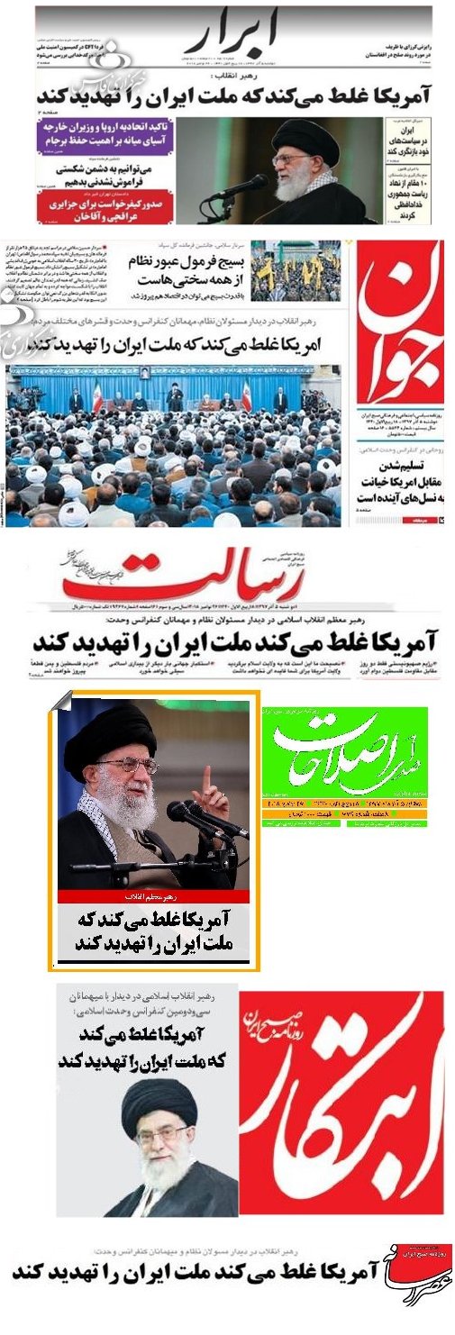 روزنامه های تهران این اظهارات رهبری را تیتر صفحات اول شماره های دوشنبه پنجم آذرماه 1397 (26 نوامبر 2018) قرار داده بودند که کُپی شماری از این صفحات در زیر آمده است: