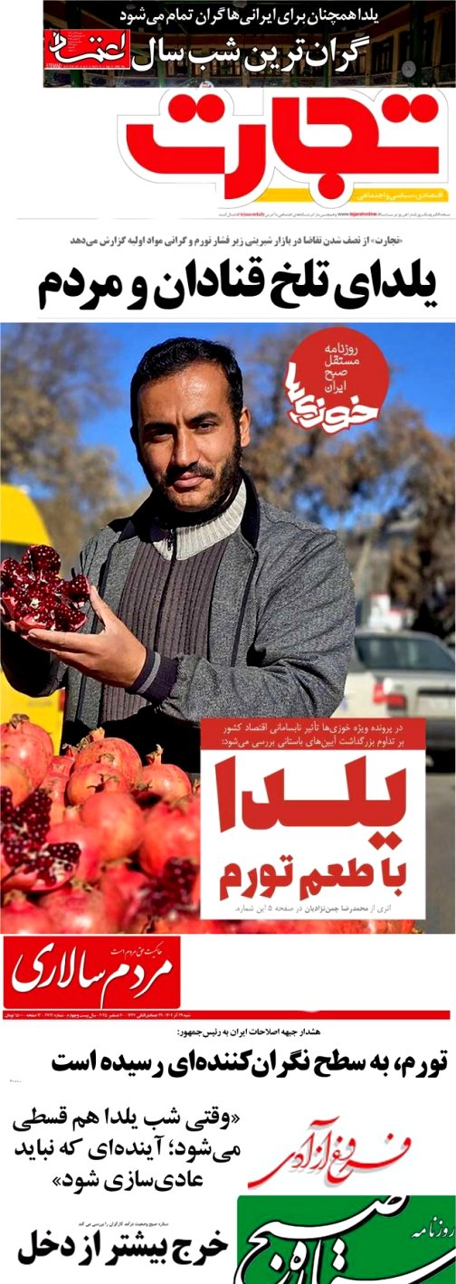تیترهای 29 آذر 1404 چند روزنامه درباره شب یلدا و گرانی ها