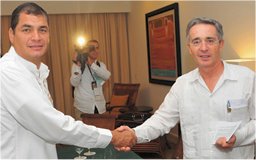 Uribe رئيس جمهوري وقت کلمبيا و Correa رئيس جمهوري وقت اکوادور به اين صورت آشتي کردند