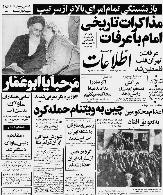 ... و کُپی صفحه اول شماره یکم اسفند 1357 روزنامه اطلاعات: