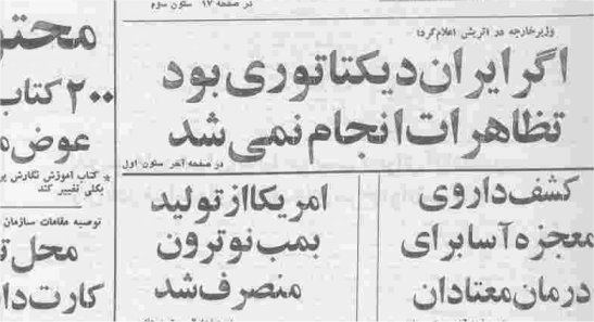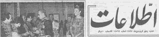تيتر اظهارات خلعتبري وزير امورخارجه وقت در دفاع از دولت شاه که در اتريش بيان کرده بود در صفحه اول روزنامه اطلاعات