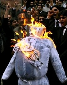 قانون دانان خشمگین می گفتند كه قاضی «افتخار محمد چودری» در برابر دولتیانی كه بر ضد حقوق بشر اقدام و یا از مقام خود سوء استفاده می كردند به سختی می ایستاد كه از سمت خود معلّق شد. این مردان قانون در چند نقطه با پلیس درگیر شدند و در یك نقطه، آدمك ژنرال مشرّف (عكس بالا) را آتش زدند.