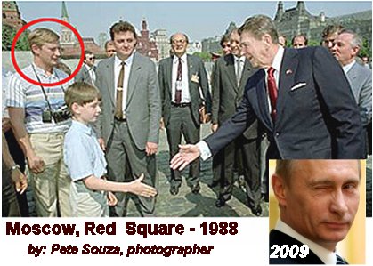 پیت سوزا Pete Souza كه زمانی عكاس رسمی «باراك اوباما» رئیس جمهوری وقت آمریكا بود و این عكس (عکس بالا) را در سال 1988 در میدان سرخ مسكو گرفته است، در آخرین هفته فوریه 2009 ضمن دادن این عكس به روزنامه نگاران جهت انتشار به شرح آن پرداخته و گفته بود: