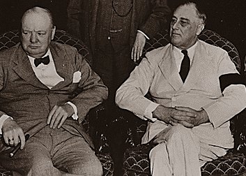 روزولت و چرچيل در ديدار دسامبر 1941 در واشنگتن ـ بازوبند و کراوات مشکي روزولت به علامت عزاداري کشته شدگان شبيخون ژاپنی ها به پرل هاربر است