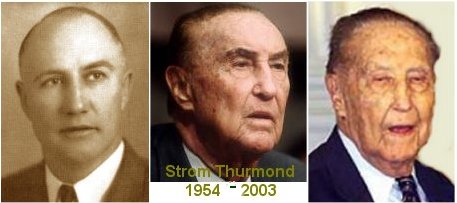 سناتور ستروم ترموند، تنها فردي در طول تاريخ كه تا صد سالگي عضو يك مجلس مقننه بود در سه مقطع از عمر طولاني اش ـ نيم قرن عضو کنگره آمريکا بود ـ با رفع تبعيض از سیاهپوستان مخالف بود ولي از کلفت سیاهپوست خود داراي يک دختر بود!