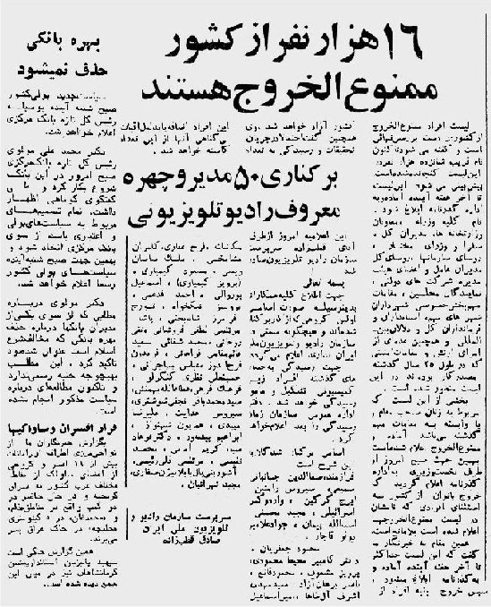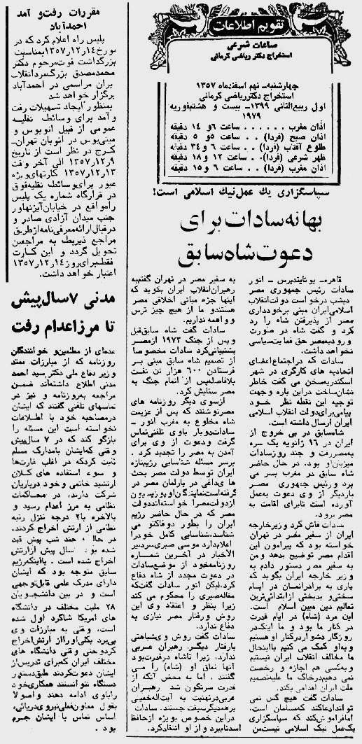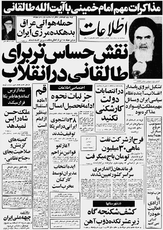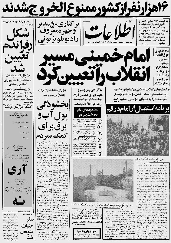 کُپی صفحه اول و چند مطلب دیگر از شماره 15795 ـ هشتم اسفند 1357 روزنامه اطلاعات (17 روز پس از پیروزی انقلاب) برای یادآوری گذشته و پژوهش: