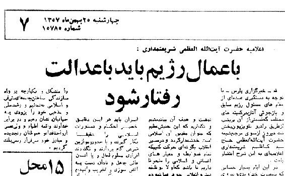 کُپی صفحه اول شماره 25 بهمن 1357 روزنامه اطلاعات و 3 خبر وقت از سایر صفحات این شماره روزنامه برای ماندن در تاریخ