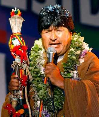 22 ژانویه 2006 «ایوو مورالس» رئیس جمهوری منتخب وقت بولیوی طی مراسمی با حضور سران و نمایندگان كشورهای مختلف از جمله سران ونزوئلا، آرژانتین و برزیل، ولیعهد اسپانیا، معاون وقت رهبری کوبا، نماینده ویژه دولت ایران، سران قبایل بومی ـ اصطلاحا؛ سرخپوست سراسر قاره آمریكا از جمله بومیان فدراسیون آمریکا دوران نخست زمامداری پنج ساله خود را آغاز كرد. از سوی دولت آمریكا، معاون وزارت خارجه این كشور در مراسم شركت كرده بود. مورالس یک سوسیالیست است و حزب او «حرکت به سوی سوسیالیسم» عنوان دارد که اکثریت پارلمان بولیوی همچنان (تا 23 ژانویه 2020) در دست اعضای آن جنبش بود. بیش از هشتاد و هشت درصد نفوس 12 میلیون نفری بولیوی از بومیان و یا دو رگه ها هستند. وسعت بولیوی دو سوم وسعت ایران است.