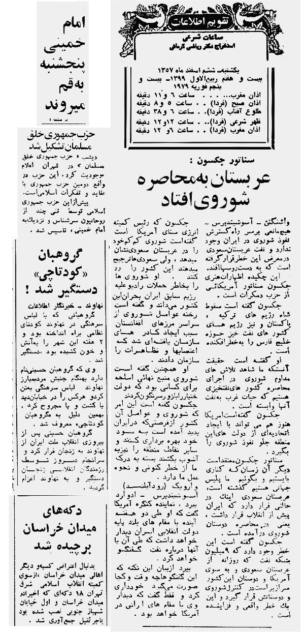 کُپی صفحه اول و چند مطلب دیگر شماره 15794 ـ هفتم اسفند 1357 روزنامه اطلاعات (16 روز پس از پیروزی انقلاب) برای یادآوری گذشته و نیز سوژه برای پژوهش: