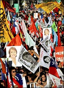 16 ژانويه 2006 نتايج دور دوم انتخابات رياست جمهوري شيلي اعلام شد كه برنده آن پزشك سوسياليست، Dr. Michelle Bachelet دكتر ميشل (میچل) باچلت بود. وي 53 و نيم درصد آراء را از آن خود كرده بود. انتخاب ميشل به اين سمت از اين جهت تعجب برانگيز شده بود كه رقيبش به مردم گفته بود كه ميشل نسبت به ثبت نكاح بي اعتنا است و بيان چنين مطلبي در يك كشور شديدا مذهبي مانند شيلي مساوي است با شكست طرف، ولي مردم اعتناء نكرده بودند.