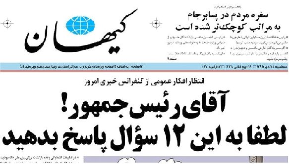 پرسش های 12 گانه مخاطبان روزنامه کیهان وابسته به دفتر رهبری جمهوری اسلامی از حسن روحانی ـ دیماه 1395