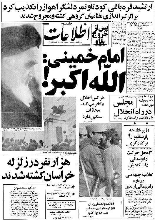 صفحات اول شماره های 27 و 28 دیماه 1357 (پس از رفتن شاه از کشور در نیمروز 26 دیماه 1357) ـ تیترهای این صفحات وضعیت وقت را منعکس می کند: