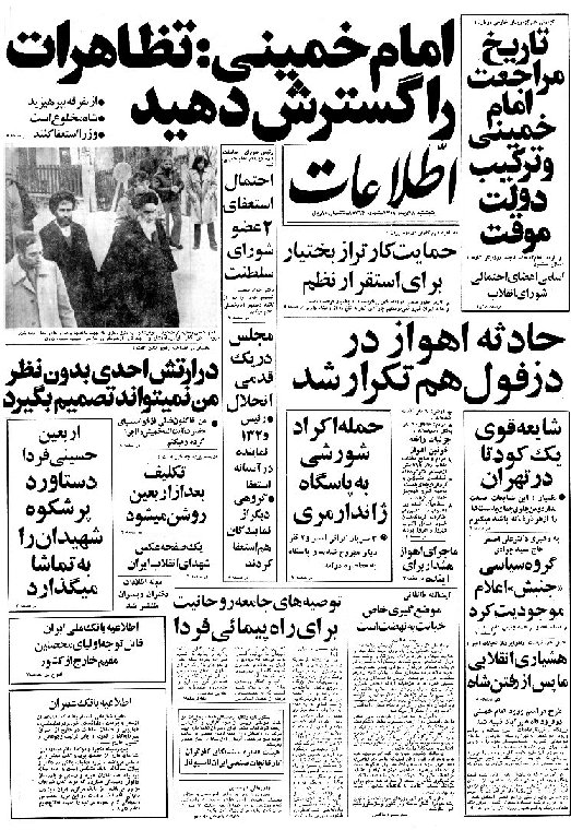 در همين روز در تهران، شاپور بختيار نخست وزير وقت گفته بود که بر سر دوراهي قرار گرفته است؛ اگر بخواهد مقاومت کند مردم کشته مي شوند و اگر کناره گيري کند ارتش دست به کودتا خواهد زد. وي افزوده بود که مشکل ديگرش اين است که اگر مجلس را هم منحل کند، ديگر نمي توان وزيران سابق را که در بازداشت هستند محاکمه کرد زيراکه طبق قانون جاري، مجلس بايد با محاکمه وزيران موافقت کند.