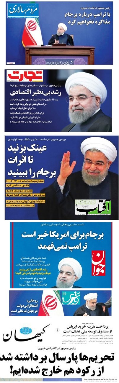 تیترها و عکس های صفحات اول شماری از روزنامه های تهران از مصاحبه 28 دیماه 95 حجت الاسلام حسن روحانی