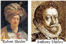رابرت علاوه بر انتونی (1635 – 1565) برادر دیگری به نام Thomas Shirley (1634 – 1564) داشت که توماس چند دوره هم از اعضای مجلس نمایندگان (اصطلاحا؛ مجلس عوام) انگلستان بود. هر سه برادر ـ متولّد ساسِکس انگلستان و از بزرگ زادگان این کشور از پادشاه کشور خود لقب «سِرSir» گرفته بودند. انتونی که در دانشگاه تحصیل کرده بود و هدفش از سفر به ایران تحریک شاه صفوی بر ضد عثمانی بود که سلاطین آن خود را خلیفه اسلام می خواندند و نیز نفوذ دولت لندن در دربار ایران و بسطِ تجارت. برای تداوم جنگ با عثمانی، تقویت ارتش ایران و مدرنیزه کردن آن لازم و ضروری تشخیص داده شده بود. انتونی به قدری شاه عباس را تحت تأثیر گفته های خود قرار داده بود که از او لقب «میرزا = امیرزاده» گرفته بود. انتونی تجربه نظامی داشت و در لشکرکشی های اروپایی انگلستان شرکت کرده بود.