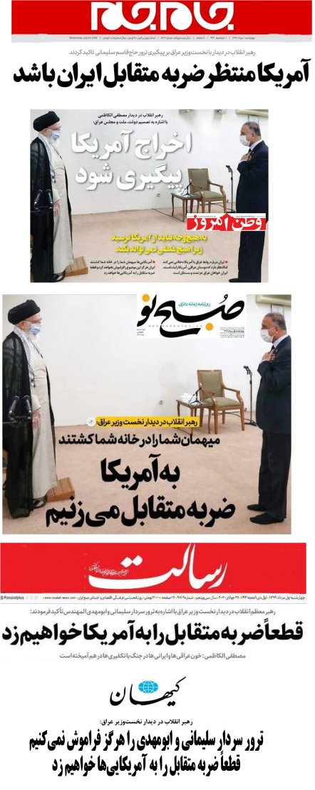 اظهارات رهبر جمهوری اسلامی در دیدار با نخست وزیر عراق در تهران که انعکاس جهانی داشت و تیتر اول روزنامه های ایران شد