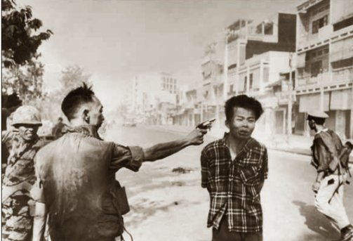 صحنه قتل يک ويت کنگ در ملأ عام در سايگون چند هفته پس از آغاز سال 1968 به دست رئيس پليس اين شهر (عکس از اِدي اَدامز)