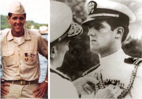 عکس های زیر، جان کری را در لباس نظامی نشان می دهد. یکی از عکس ها در ویتنام از او گرفته شده و دیگری هنگام دریافت نشان: