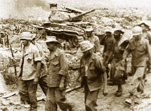نظاميان فرانسوي در نبردگاه دين بين فو مي روند که تسليم ويتنامي ها شوند