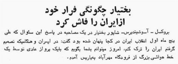 او، طبق کاپی (کُپی) این روزنامه که در زیر آمده است گفته است که 5 ماه پس از انقلاب با پرواز عادی یک هواپیمای مسافربر متعلق به یک شرکت بزرگ از ایران خارج شده است ـ خارج شدن یک نخست وزیر سابق و سیاستمدار معروف و تحت تعقیب با پرواز عادی و 5 ماه بعد!: