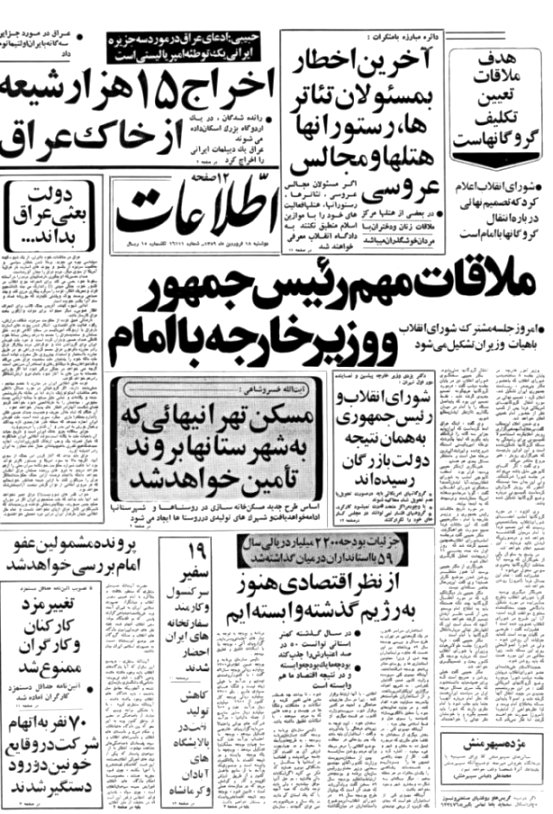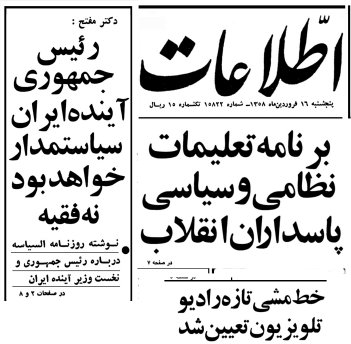 با این هدف، نگاهی به کُپی صفحه اول روزنامه اطلاعات ـ شماره 18 فروردین 1359 (14 ماه پس از انقلاب):
